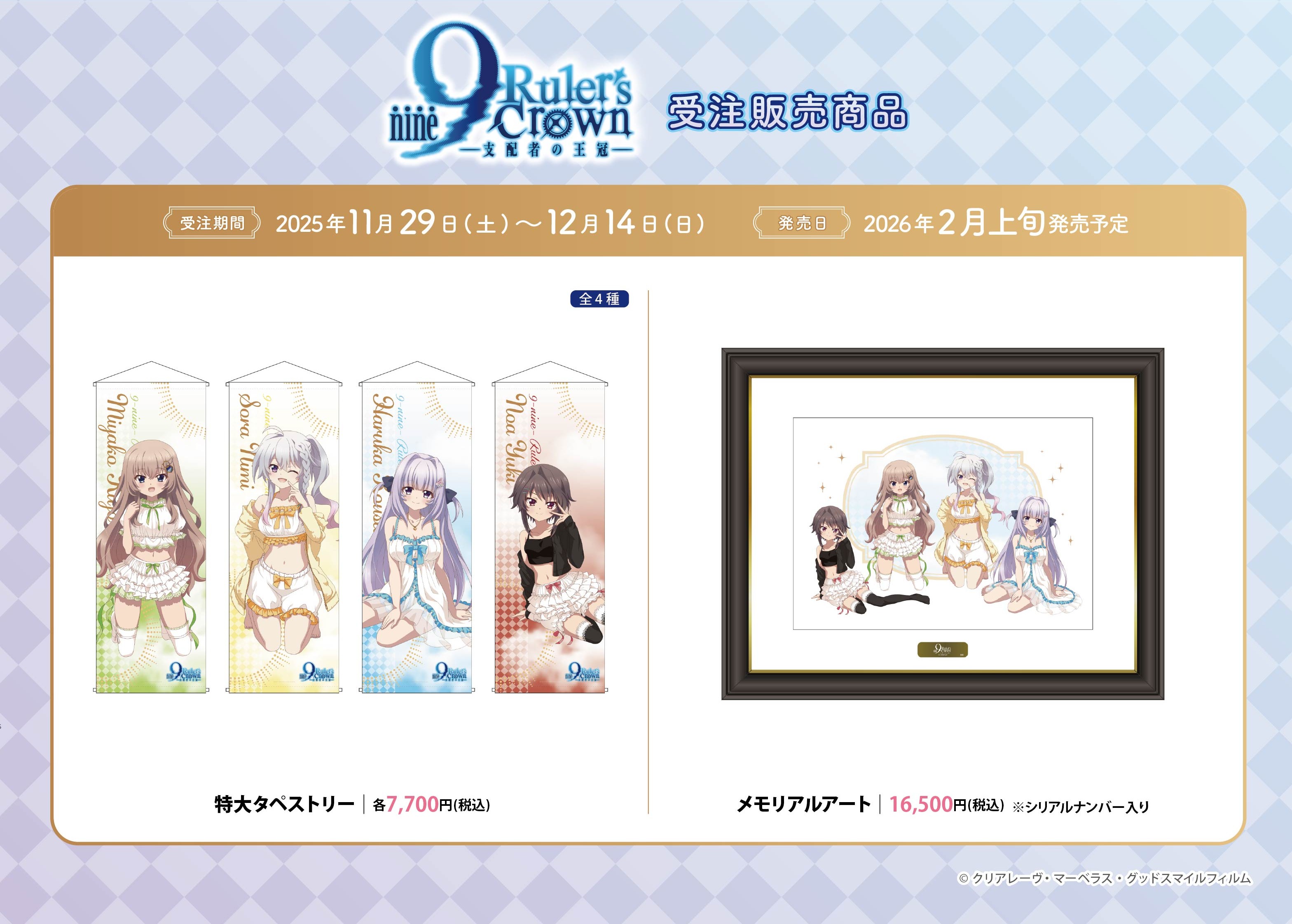TVアニメ『9-nine- Ruler's Crown』ポップアップストアを開催いたします。新規描き下ろしイラストを使用した新作グッズの販売や、抽選会などをご用意しております!!