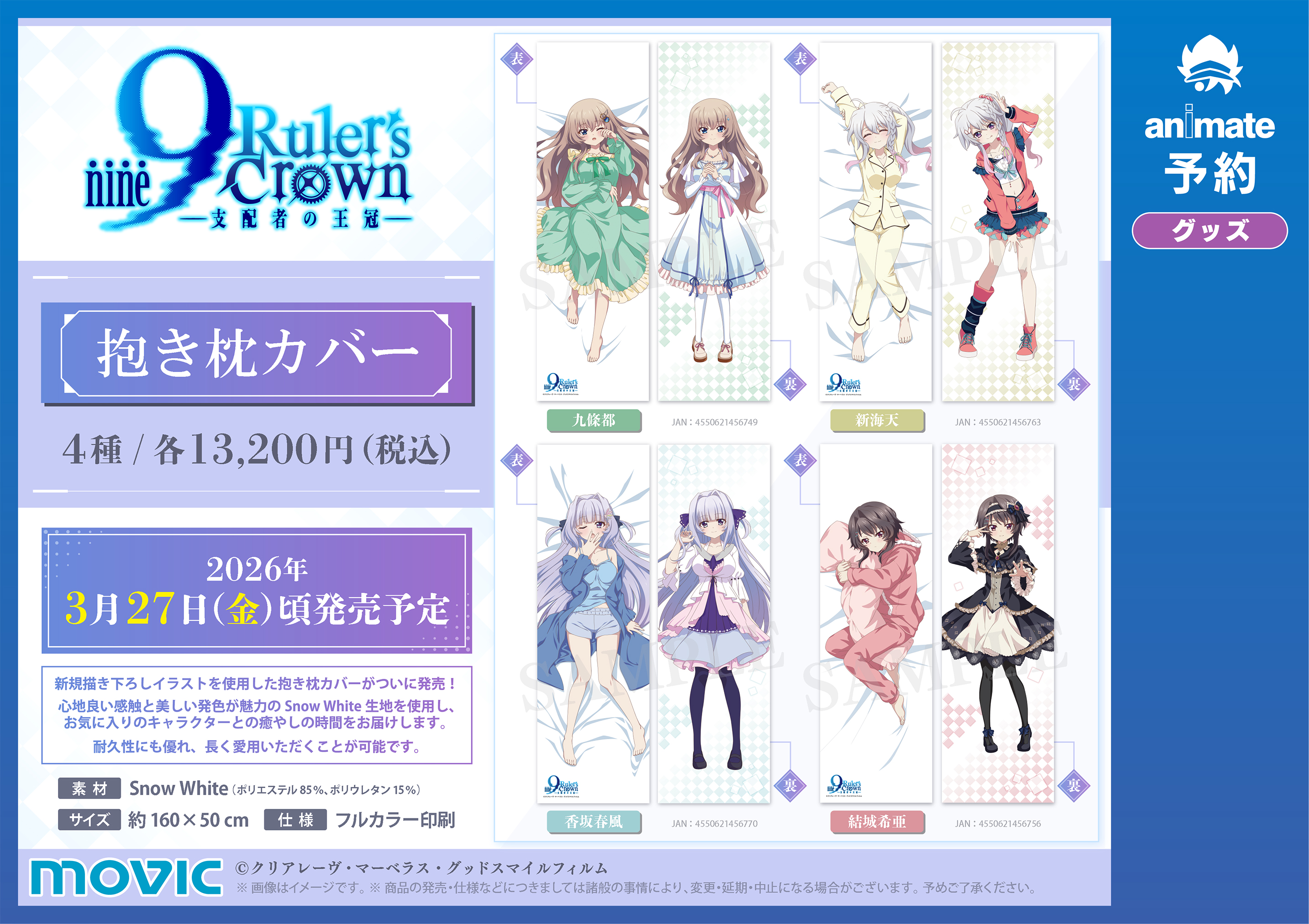 TVアニメ『9-nine- Ruler's Crown』抱き枕カバーが発売!
