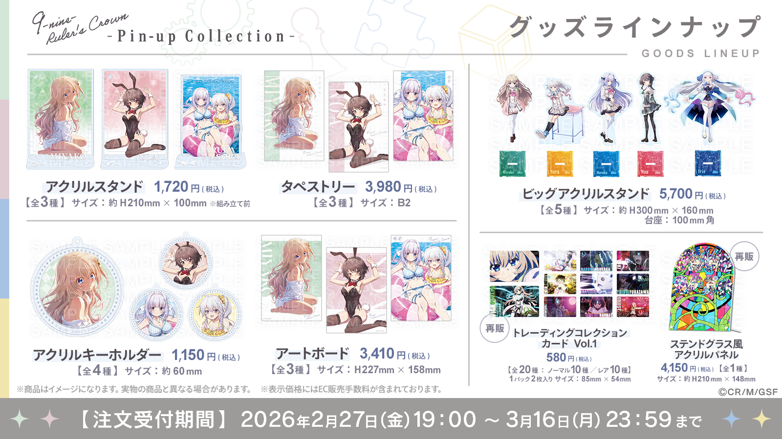 販売内容:TVアニメ『9-nine- Ruler's Crown』 -Pin-up Collection-のグッズ販売